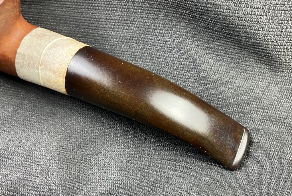 Using black Fiebing’s Leather Dye and a paintbrush, I carefully reapplied the black dye to the black portions of the stummel.