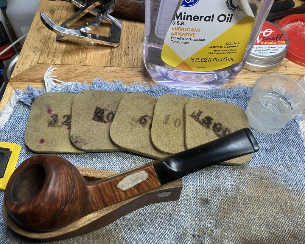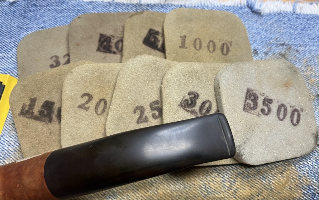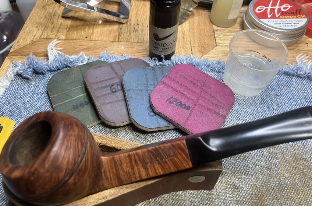 Eventually the pipe was worked with micro-mesh pads 4000-12000. Here the wiping was done similarly to the sanding stems except instead of mineral oil I used Obsidian Oil on the stem.