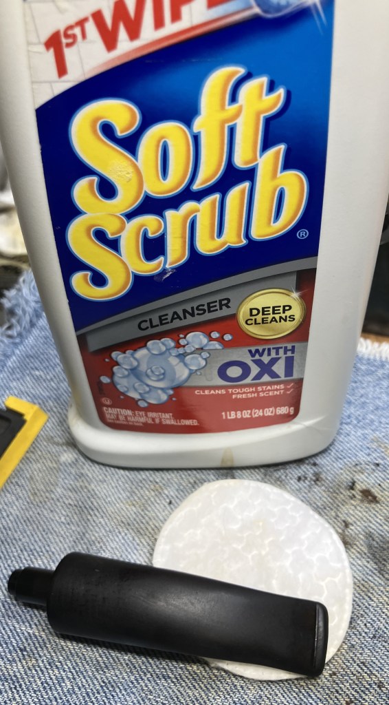 I took the stem to the workbench and started scrubbing it with Soft Scrub cleanser on make-up pads. This produced pads well covered with oxidized vulcanite and the stem started to look better.