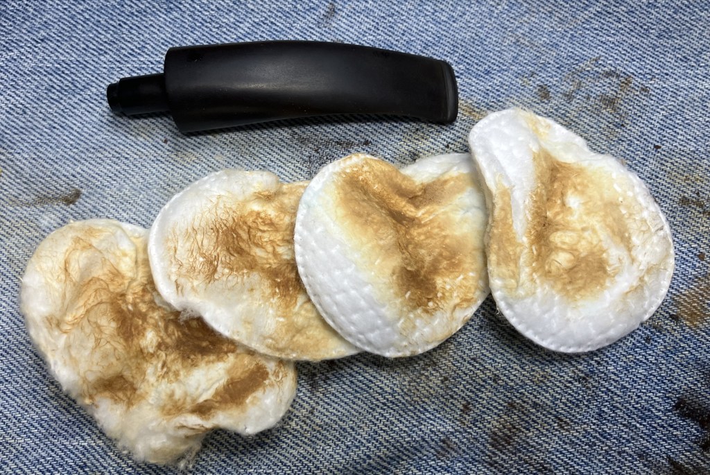 The next day I removed the cotton from the bowl and shank. The shank cotton was far more discolored than that of the bowl.