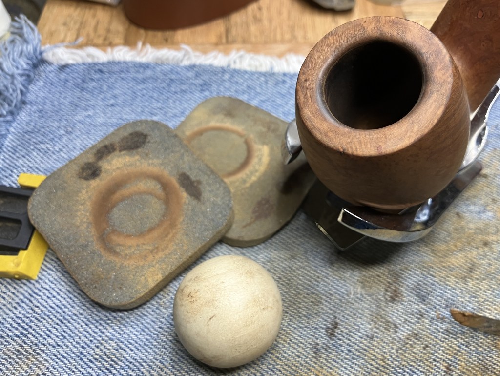 I used a wood sphere and a sanding sponge to restore the inside edge bevel and to remove most of the charring from lighting the pipe.