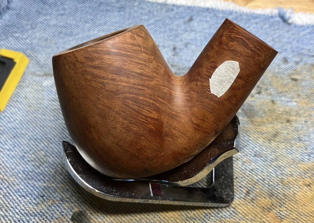 I’m back into Marxman mode. This one has sat neglected in the queue for several months. Everytime I looked over at the pipes waiting to be restored I thought about doing this one, then I got distracted like a dog whose owner yells, “squirrel!” Speaking of dogs, I frequently call my 85 pound four-legged tongue a “big headed freak”. This bulldog is kind of like that except it’s a big bowled freak with a lovely forward cant. I ordered this pipe from Judds Pen and Pipes, a well known seller of eBay, back in May of 2024. I told you it had been waiting in the queue for a while… Below are some photos I took before starting work on this pipe.