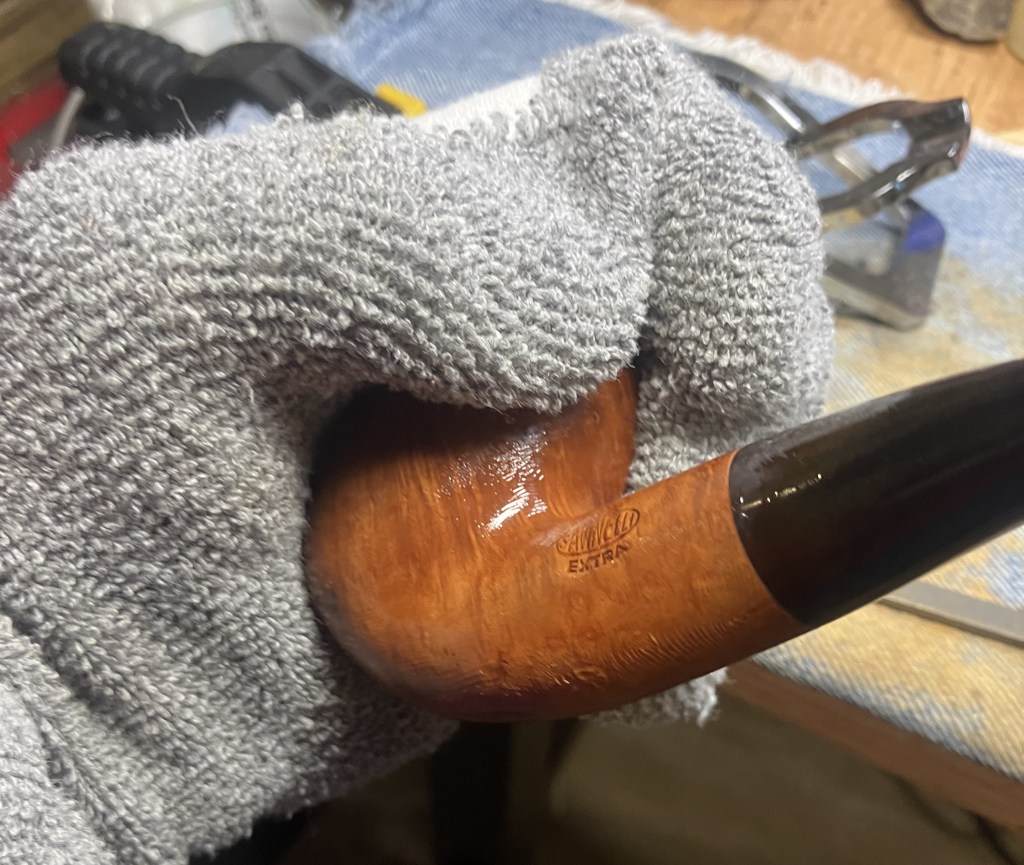 I returned the pipe to the buffer for several coats of carnauba wax.