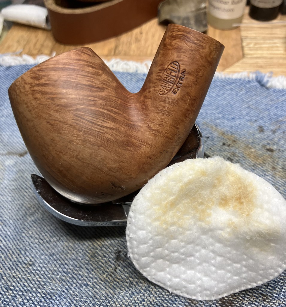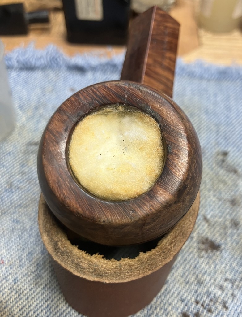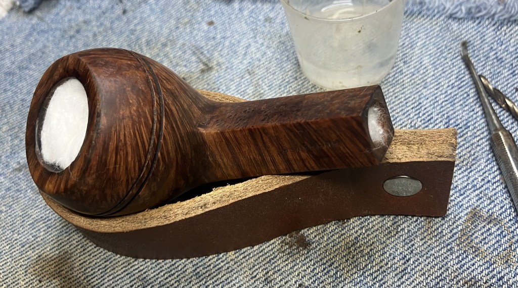 The leather was liberally coated with Mink Oil and the rim with Before and After Restoration Balm. These were allowed to sit for 30 minutes. It was about here that I realized that I had not cleaned the shank airway. DOH!