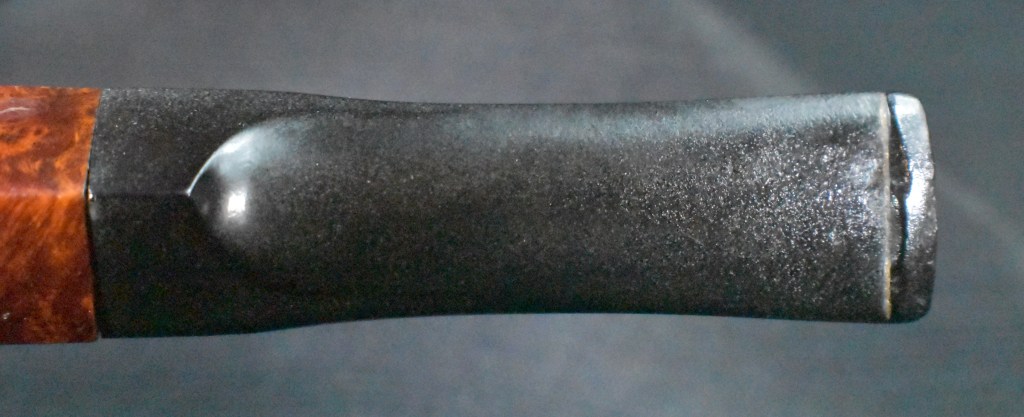 Both the top and bottom of the stem were flame painted with a lighter in hopes of lifting some of the dents by causing the vulcanite to expand and contract with heat. This may have helped a little bit.