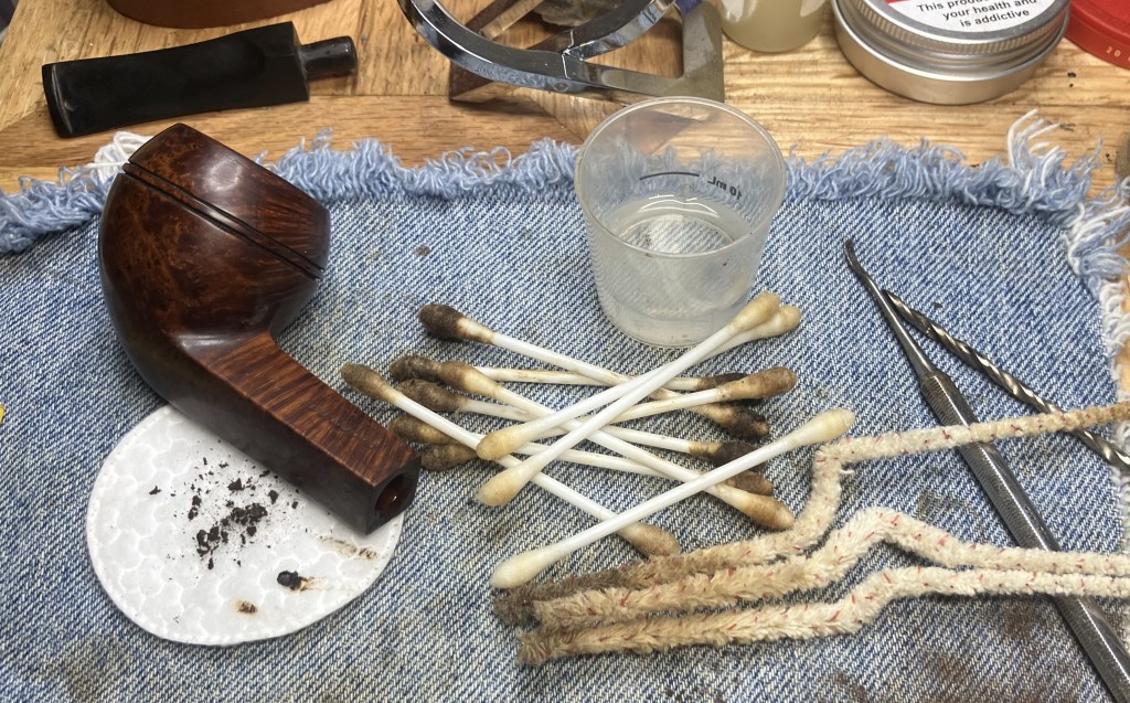 Further cleaning with bristle pip cleaners also did not indicate a terrible airway. I was very glad to know the previous owner kept a relatively clean pipe.