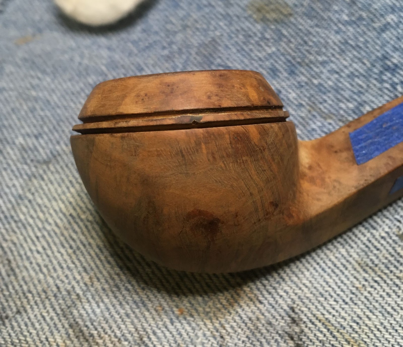 That finished, I examined the stummel for the next task to take on. There were several fills on the pipe. They appeared lighter and remained solid after all the scrubbing and alcohol. I figured I would leave them alone, staining them to match later. The rim was charred under all of that lava. Charred nearly all the way around. Apparently the previous abuser was ambidextrous as well and wielded a lighter in both hands.
