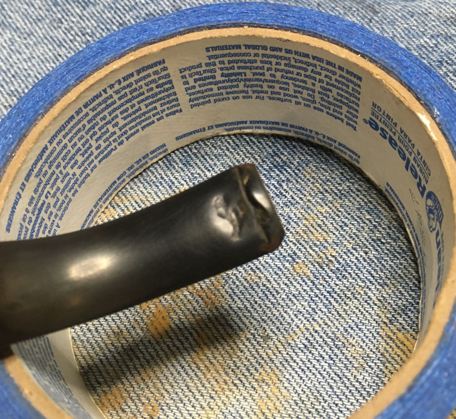 Okay, tenon tightening using black CA – step pre-1. I cleaned the tenon with 95% ethyl alcohol. The tenon was then sanded with the 400 grit sanding sponge to roughen the surface. I used a short flat “dry brush” paint brush to smoothly and evenly coat the tenon with black CA. I constantly rotated the stem as I worked. The tenon was then spritzed with a cyanoacrylate drying accelerator. The hardened CA was then sanded with the 1500 grit sanding sponge to smooth it and check for fit. I had to apply a second very light coat of CA and repeat the drying/sanding to get the desired snugness. Oh, make sure you put your brush into a medicine cup with a couple ml of acetone and let it soak. They clean up almost like new.