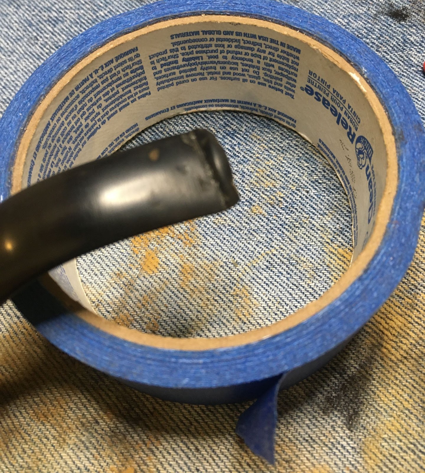 With the dents filled and fairly smoothed it was time to rebuild the button. To do this I wrap the newly smoothed area in scotch tape. I don’t want to have to redo any work that I had just done. The tape also projects the surface from the file and sanding sponges for the work to be done.