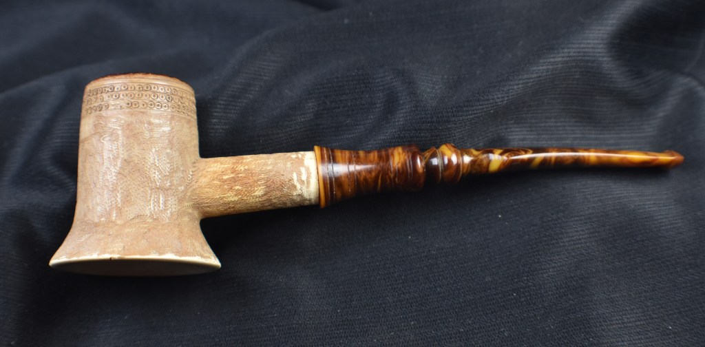 Here is a pipe which I had my doubts about ever possessing. I first saw the eBay auction in the spring of 2023, I think. The price was more than I was willing to spend but I was intrigued by the shape. The pipe was never sold and was relisted. This went on for numerous cycles. I eventually started making offers to the seller which met with no reply nor counter offer from the seller. I thought that I must be just offering too little to warrant a response. Well, long story shortened, after over a year of this the seller agreed to my offer and I received the pipe in July of 2024. I guess this proves that something is only worth what someone is willing to pay.