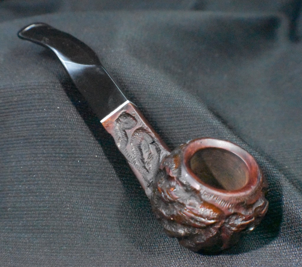 With nothing to go on All I can say without conjecture is that this is a pipe made from genuine briar. I am not even sure what the stem material is made of. In the restoration it did not produce the typical brown debris of sanded vulcanite. The sanding produced a very black dust. The stem material feels harder than vulcanite between the teeth but sands as if it is much softer than vulcanite. Weird, I know. The stem is also apparently drilled to accommodate a 3 mm filter. This too is more indicative of pipes made for the European market.