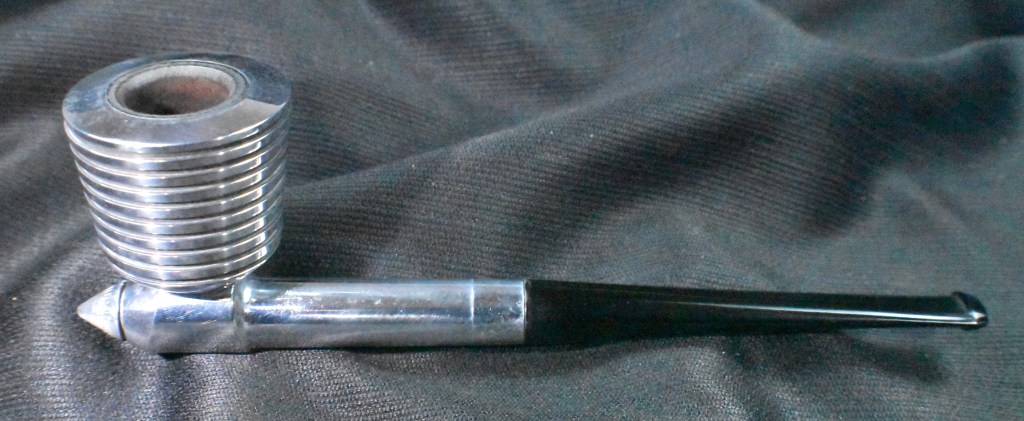 Yeah, metal pipes intrigue me. I don’t have many and frequently smoke even fewer. There is just something about them that makes me think of George Jettson, space age polymers and TANG. Although this pipe dates back farther than the 1960s space age, more on that in the background. Last winter I got a wild hair (sorry, American idiom meaning spontaneous enthusiasm) and decided that I needed to work on metal pipes. Like a typical ADHD gerbil (another idiom meaning, I have too short of an attention span), I lost interest after acquiring several in-need–restoration Kirstens and a bag of a dozen metal pipes that I purchased from Steve Laug (reborpipes.com). I sharpened my very dull metal polishing skill with some encouraging words and over the phone instruction from Doug Bisbee (dkmetalpipes.com/Estate Vintage Metal Tobacco Pipe Restoration & Sales). A couple of restorations later I had moved on to other projects and interests.