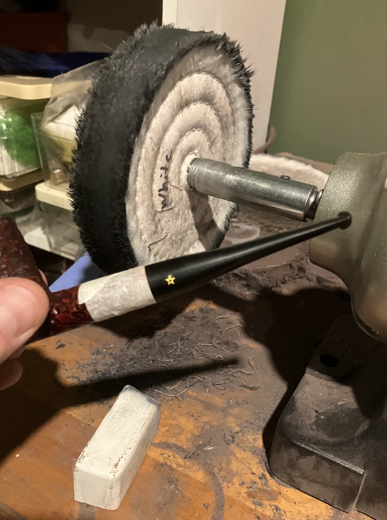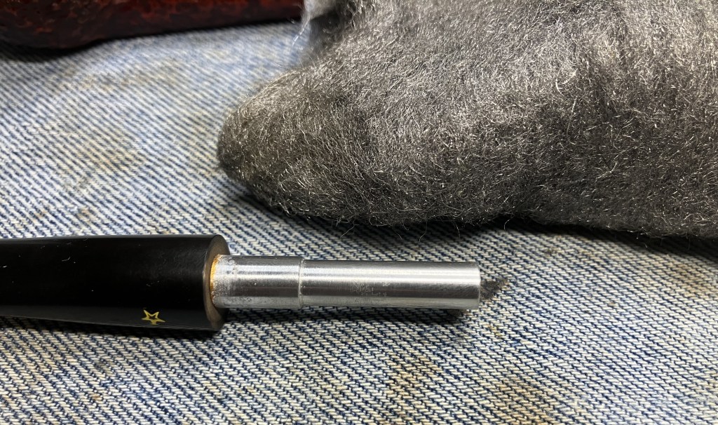 I wanted to revitalize the stem with some buffing. I did not want to affect the finish on the shank, so I taped the end of the shank with masking tape.