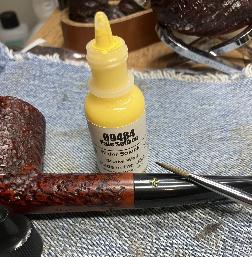 The yellow painted stem logo did take a slight beating from the buffing. I used some Pale Saffron acrylic modeling paint to refresh the logo. This color was a nearly perfect match to the original color. The acrylic paint was allowed to dry for a few minutes.
