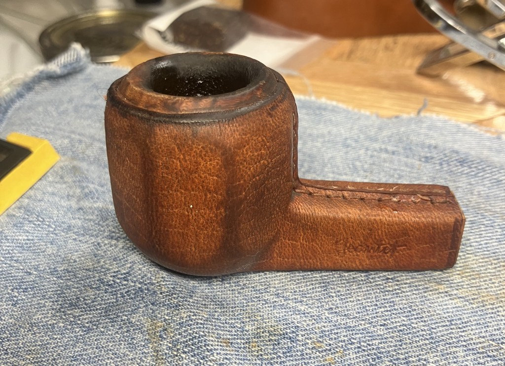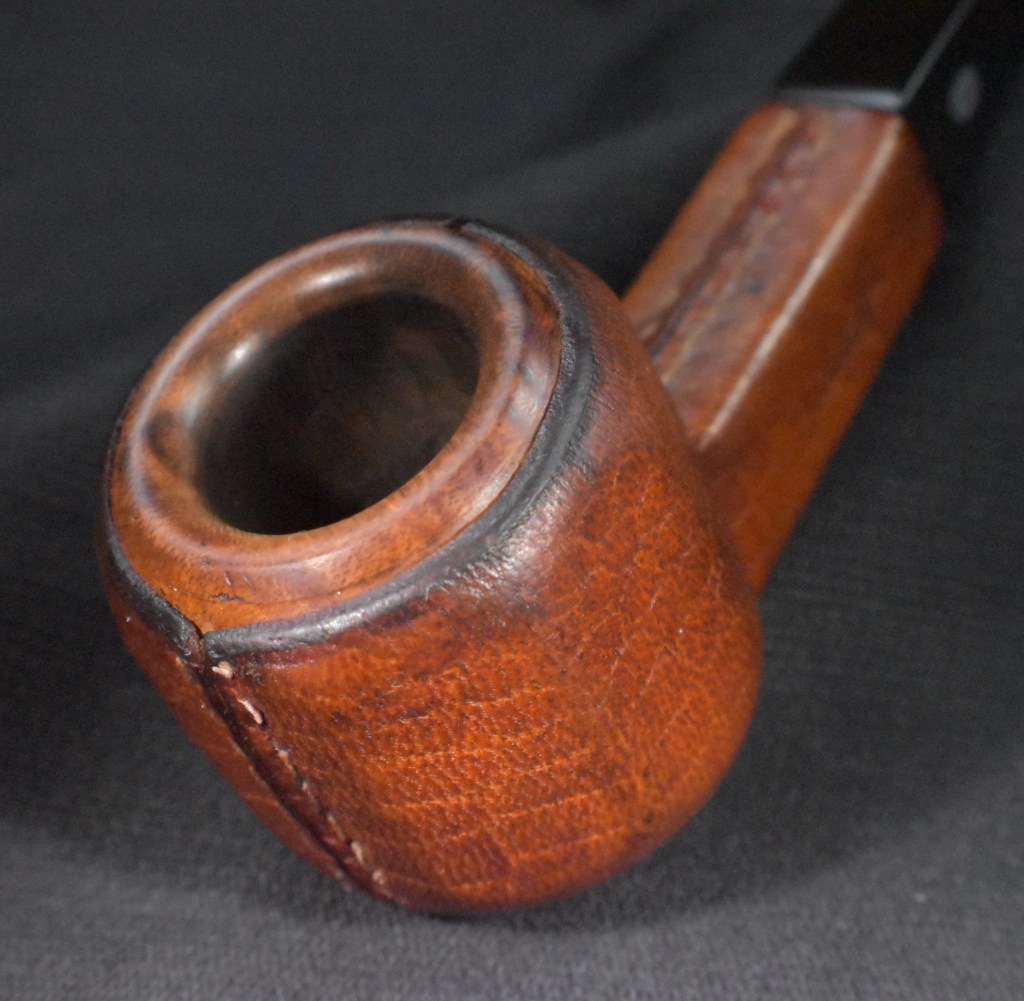 Leather wrapping of briar has an equally interesting history and again pipedia.org details one of the most renowned leather workers who specialized in pipes. “In 1948 Jean Cassegrain inherited a small shop near the French Theater on the Boulevard Poissonnière in Paris, called “Au Sultan”. Articles for smokers and fountain pens were offered there.