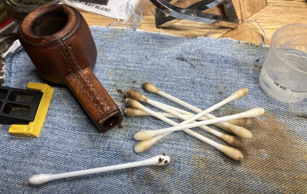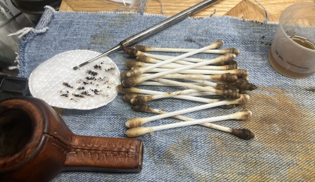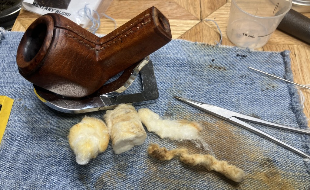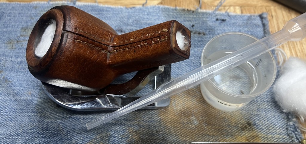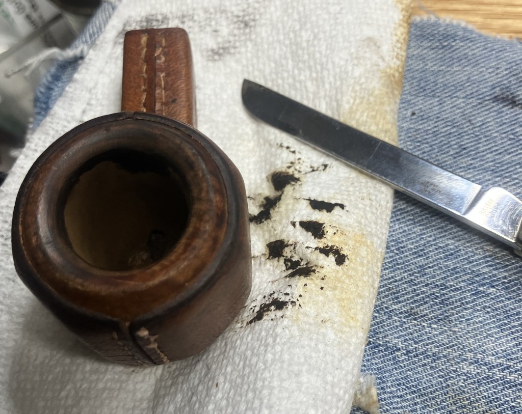 The leather was liberally coated with Mink Oil and the rim with Before and After Restoration Balm. These were allowed to sit for 30 minutes. It was about here that I realized that I had not cleaned the shank airway. DOH!