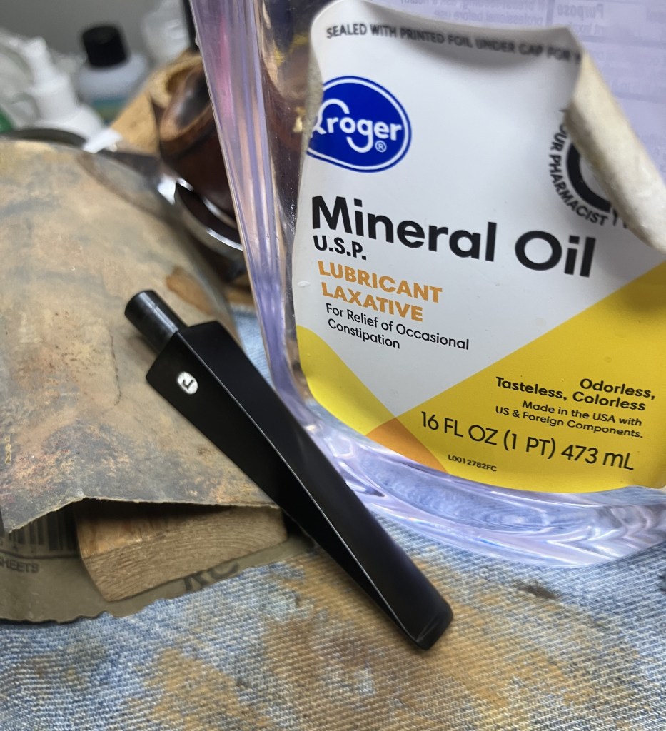 The stem was then sanded with a series of sanding sponges from 600-3500 grits. Again, the stem was rubbed with mineral oil and wiped with paper towels between each sponge.