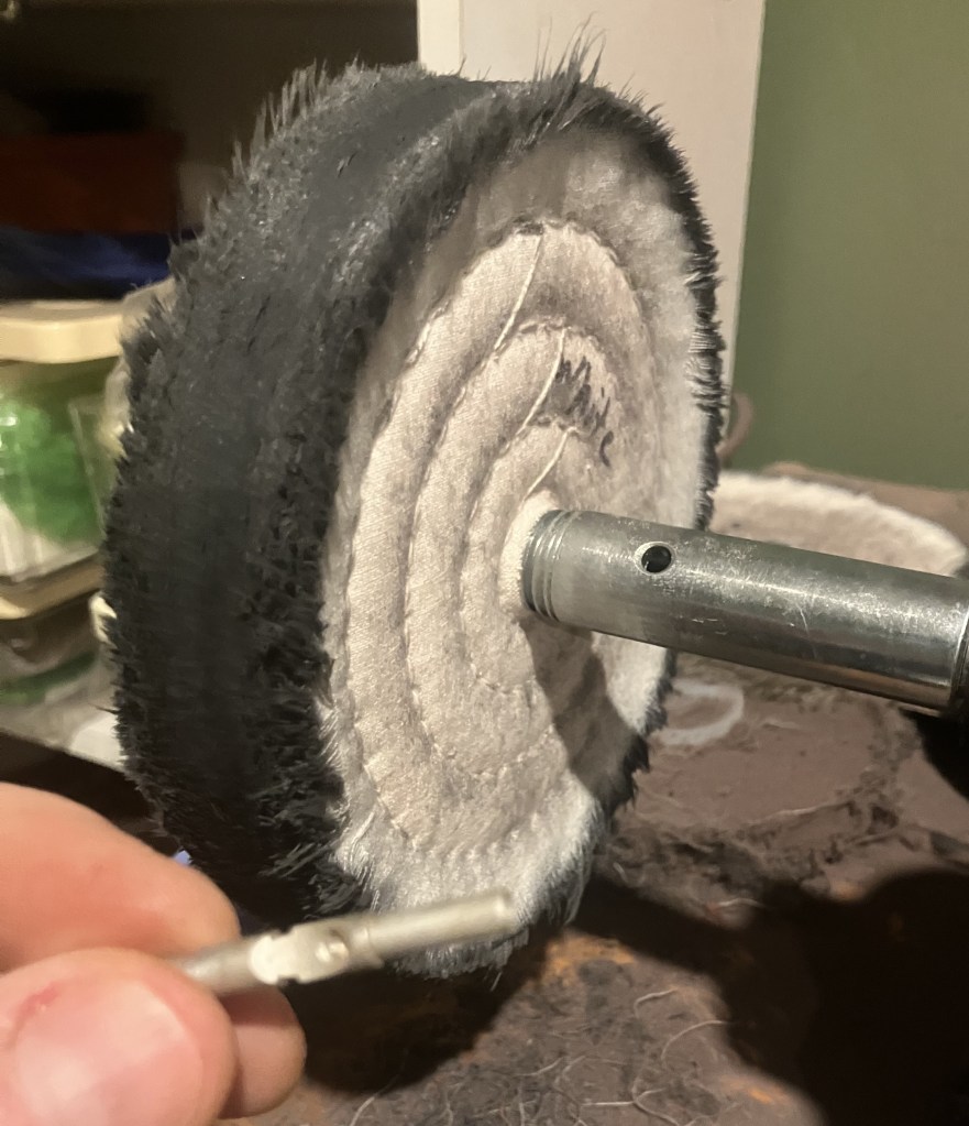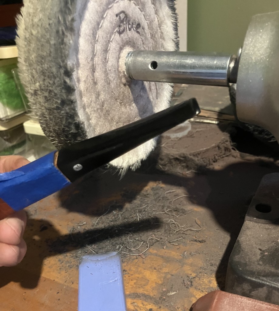 I then took the stinger to the buffer to make it look even better by polishing it with white buffing compound. I hoped that I could not launch the stinger across the room as I lost a grip on it.
