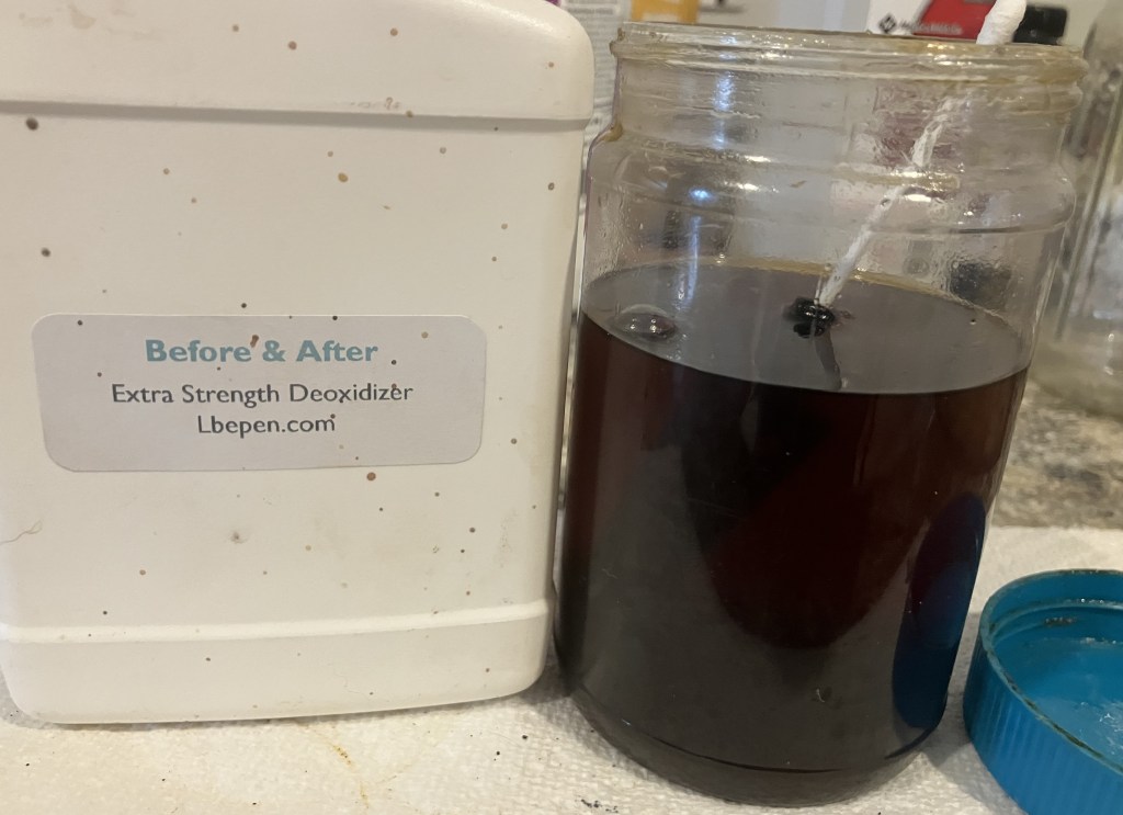 The stem was then suspended into Before and After Extra Strength Deoxidizer (deox). I planned to leave it in the solution for at least 12 hours but more likely 18.