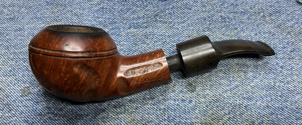 This pipe was likely made between 1939-1950 in the shop of Tom Howard in New Jersey.  I had done a restoration of a Greenwich pipe back in November of 2023 that restoration can be seen HERE.  Little information was available other than Greenwich House Corporation of New York City produced or imported Algerian briar pipes and produced and sold a metal pipe, Thoro-Kleen.”  (A Tom Howard Billiard Restoration – NebraskaPeteGeek)
