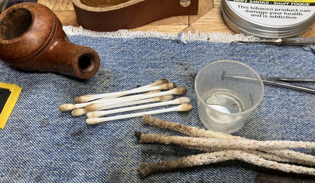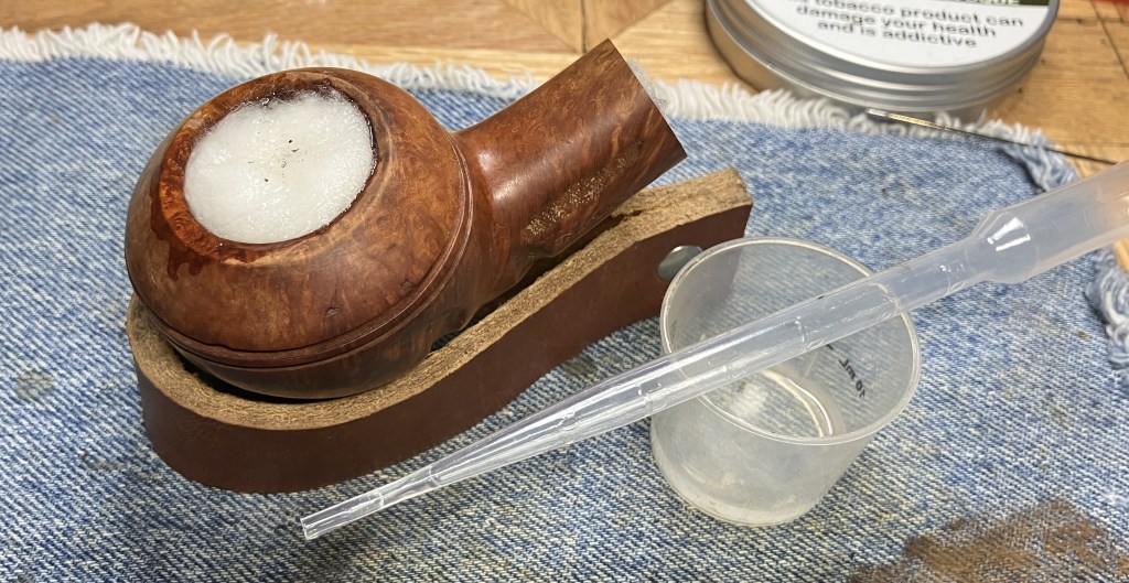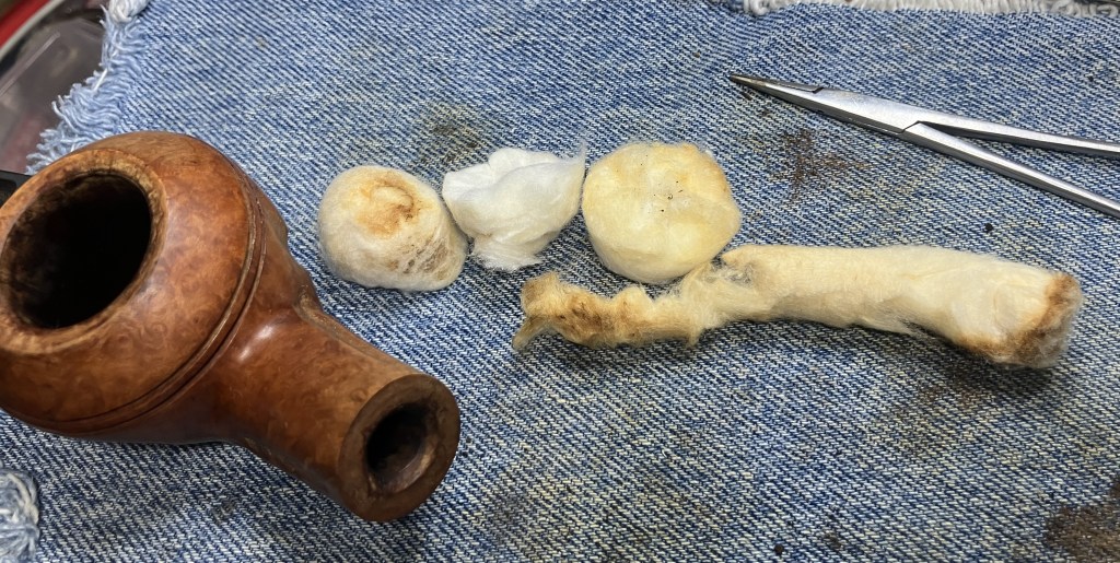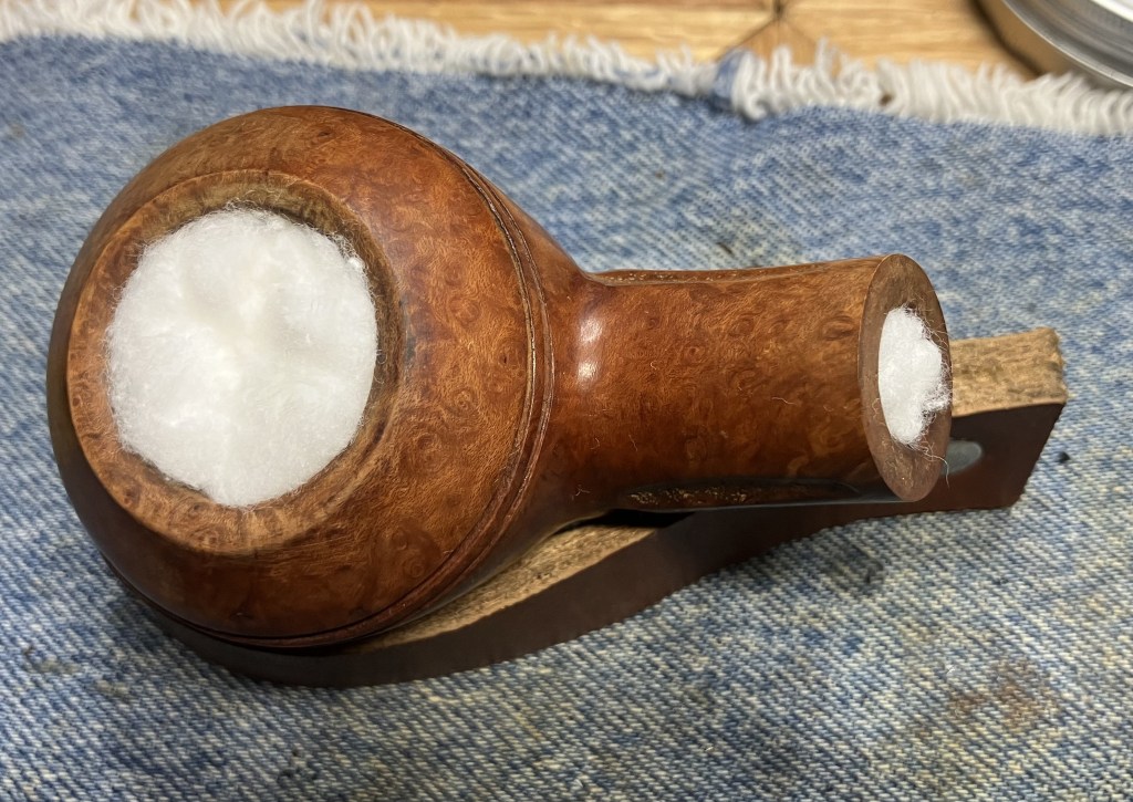 Due to the severe fouling of the shank, I thought it would be a good idea to allow the bowl and airway to have a cotton/alcohol treatment.  Both were packed with cotton.