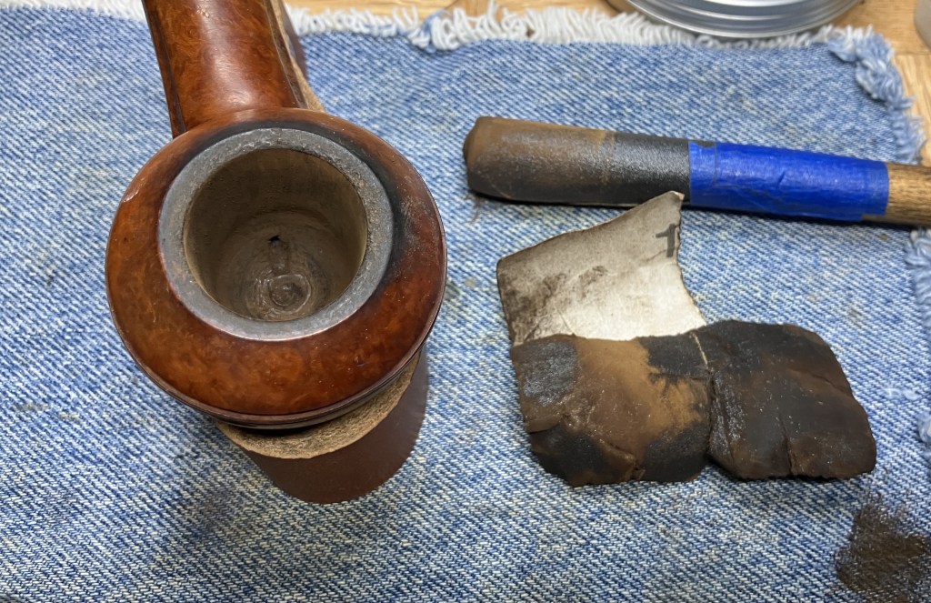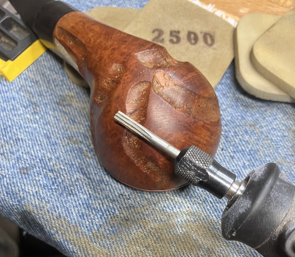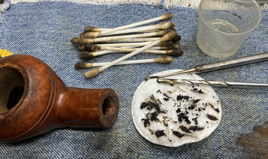 The clean stem was misleading, though, I kind of expected the shank to be a mess due to the tight fit with the stem.  There was a great deal of scraping with a dental scraper and boring out of the draft hole with the Kleen-Reem shank drill.  The shank was also scrubbed with numerous cotton swabs dipped in 99% ethyl alcohol.
