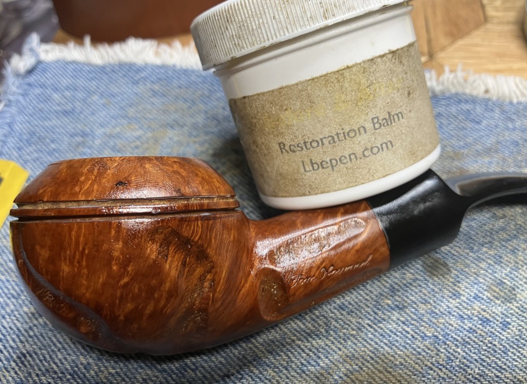 After cleaning the stem of all buffing compound and wiping the stummel with an alcohol wetted make-up pad, I gave the stummel a coating of Before and After Restoration Balm.