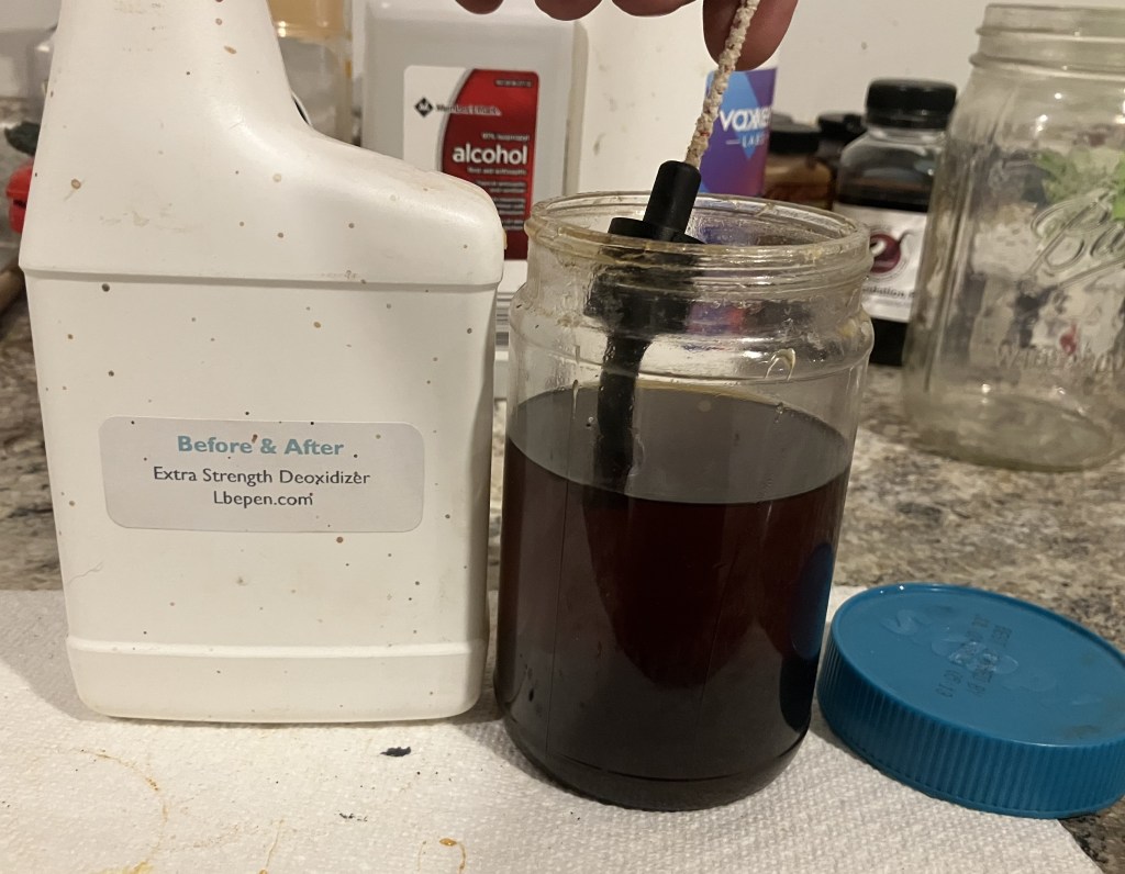 The stem was removed from deox and allowed to drip excess deoxidizer back into the jar.