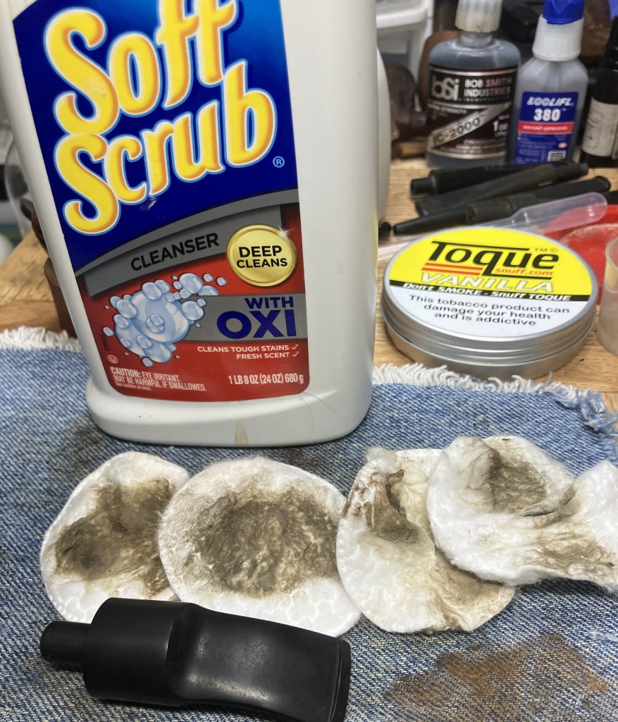 I used Soft Scrub cleanser on make-up pads to remove additional oxidized rubber from the stem.