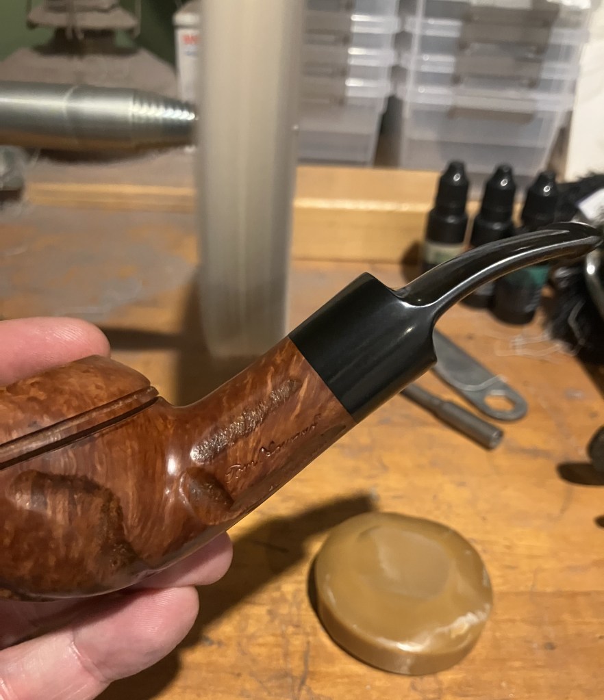 The pipe was then taken to the buffer for several coats of carnauba wax.