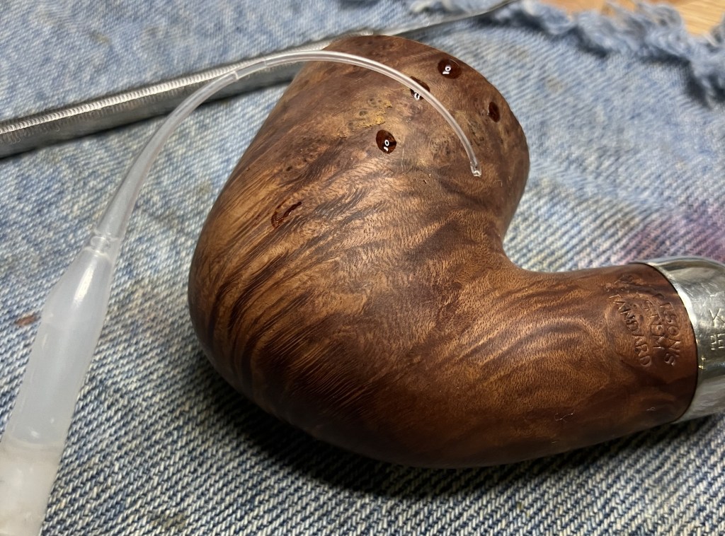 It was getting late so I gave the stem a liberal coating of Mark Hoover’s Before and After Hard Rubber Balm and went to bed.  I doubt that letting the vulcanite soak in this product does anything but it made me feel good about myself and I slept well.
