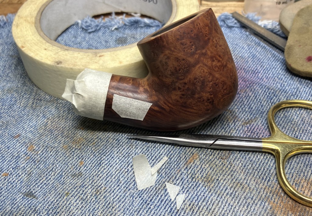 The shank was masked off to protect the newly sanded shank from the buffing wheel.