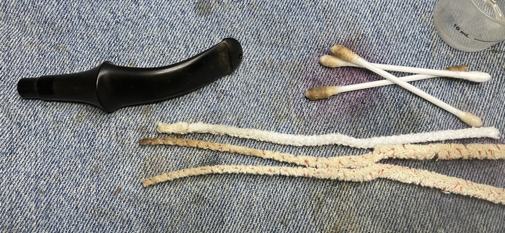 That was followed with a cleaning of the inside of the stem with 99% ethyl alcohol, pipe cleaners and cotton swabs.