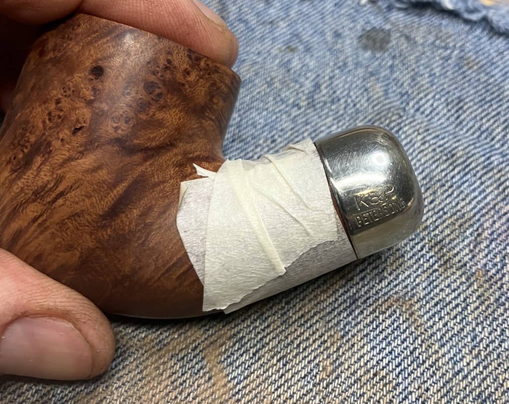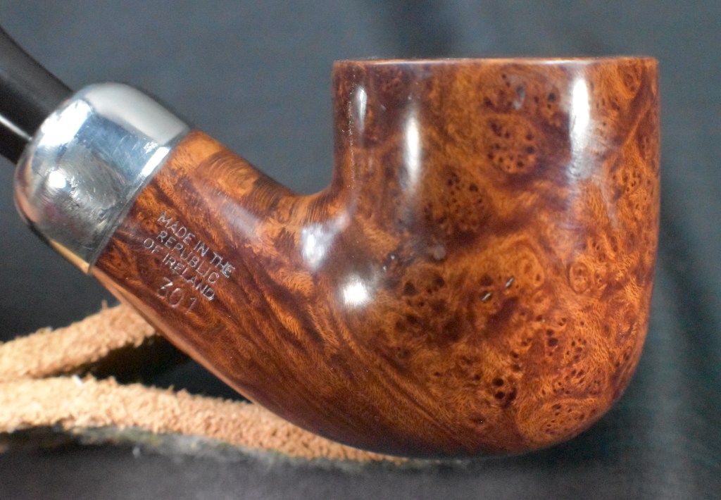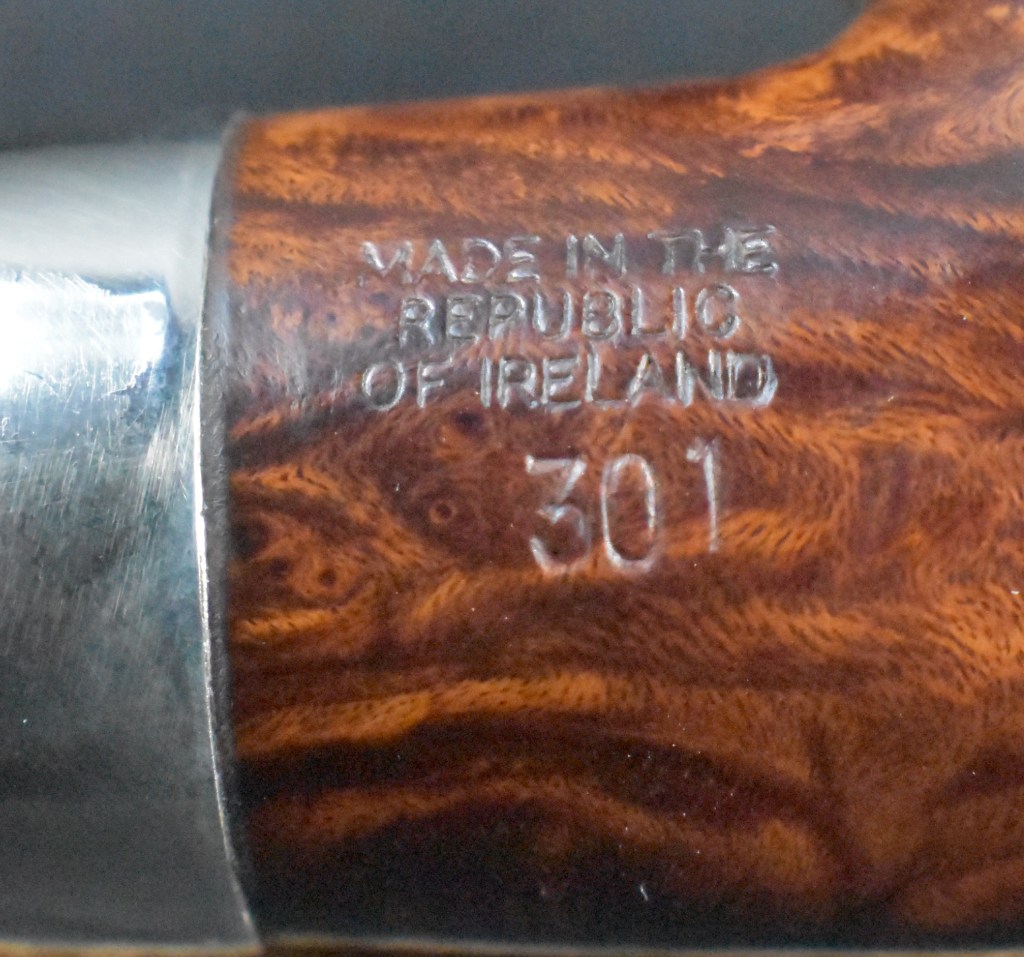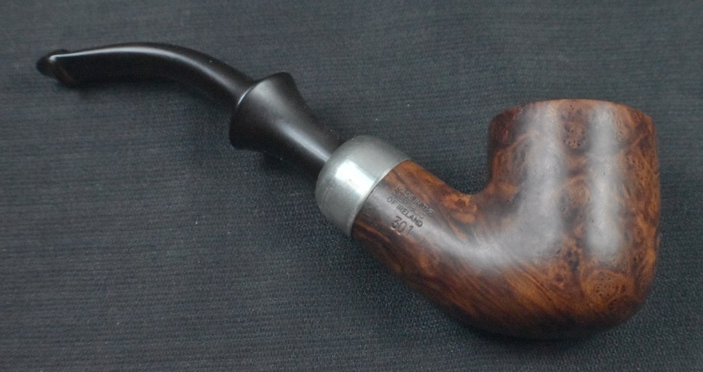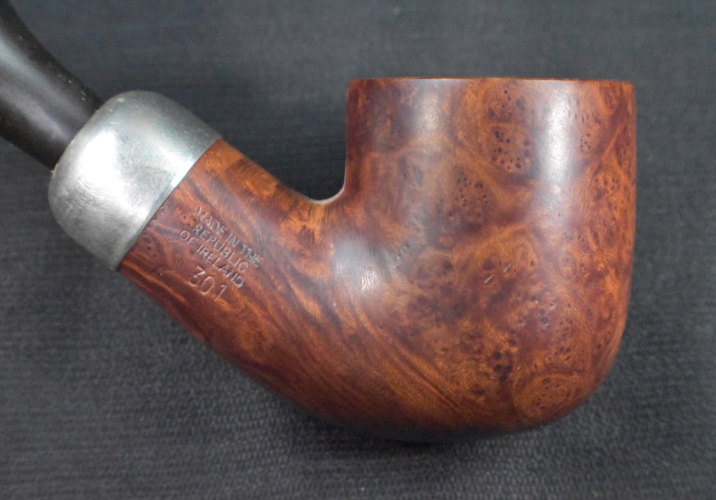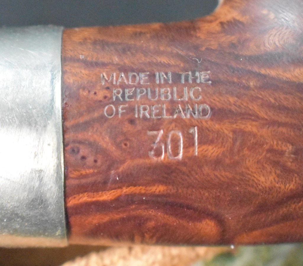 It seems strange to me that of all the Peterson pipes that I own, I have shown few restorations of them.  This is because I was not documenting or blogging about them when they were restored.  The blog has only been a lifestyle since October of 2023 and these pipes were acquired and restored long before that. This 301 is a re-restore.  “Huh?”, you say.  Well It was a pipe that I purchased on the estate market cleaned up and used for several years.  Now someone has expressed an interest in acquiring their own 301 and asked if I had one available.  Since pipes were made for smoking and this lovely Pete does not get very frequently used, I decided it would be better off with a companion who would use it.  Where it came from originally is a question I cannot answer. Likely an eBay auction though. When it was purchased, also unknown, but probably early 2020s.  The pipe was stamped PETERSON’S Over SYSTEM over STANDARD on the left shank and MADE IN THE over REPUBLIC over OF IRELAND over 301 on the right shank.  The stampings are all crisp and clear.  There was no signature P on the stem which I felt as if it was missing something without it also lacking was the faux hallmarks on the nickel ferrule.  It was only stamped with K&P over PETERSONS.  Below are some photos I took of the pipe before beginning this restoration.