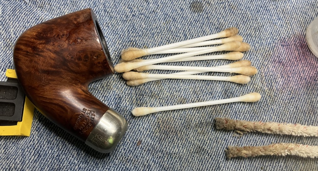 The shank was cleaned in similar fashion.  Whew, I would have been embarrassed if this pipe was dirtier than that.