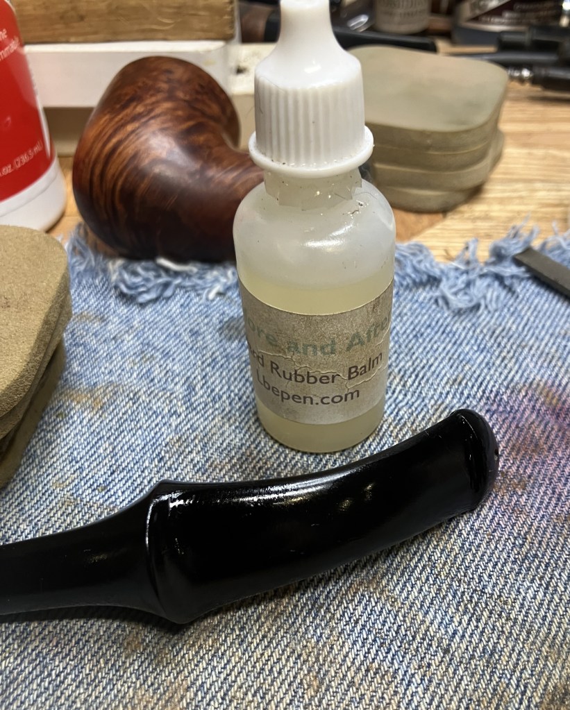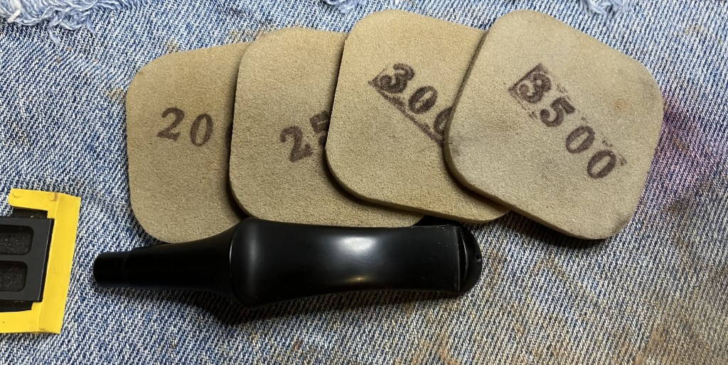 The next morning I wiped the Hard Rubber Balm from the stem and continued sanding with 2000-3500 grits sanding sponges.