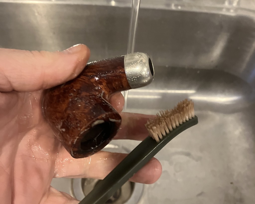 The stummel was scrubbed with undiluted Murphy Oil Soap and a nylon brush.  The soap was rinsed with warm water and the stummel dried with a cotton hand towel.