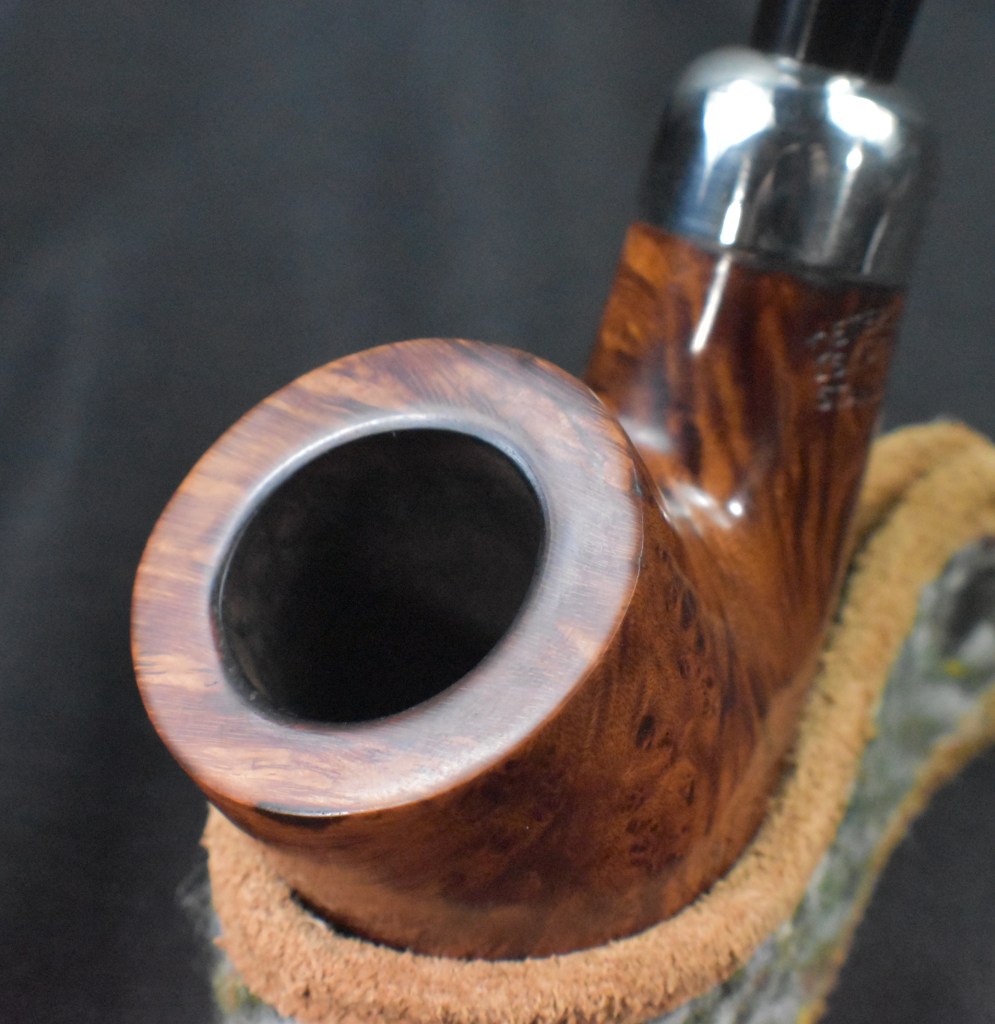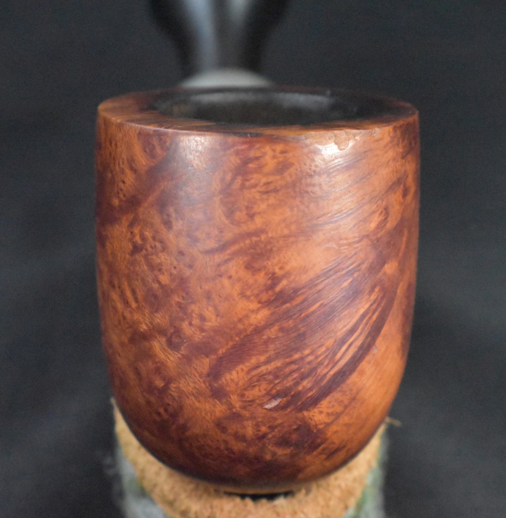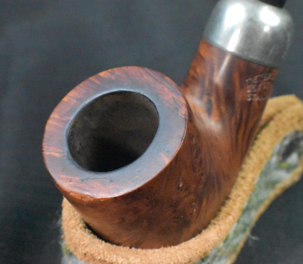 The pipe was in good shape overall.  There were some tooth dents on the stem and slight oxidation.  I apparently did not restore the stem, other than removing the oxidation, from when I first got the pipe.  The tobacco chamber had been reamed, again probably from my cleaning.  There were a few spots where the old fills were failing and a spot on the front of the outside rime where the pipe had been knocked.  In general a “light” restoration was required.