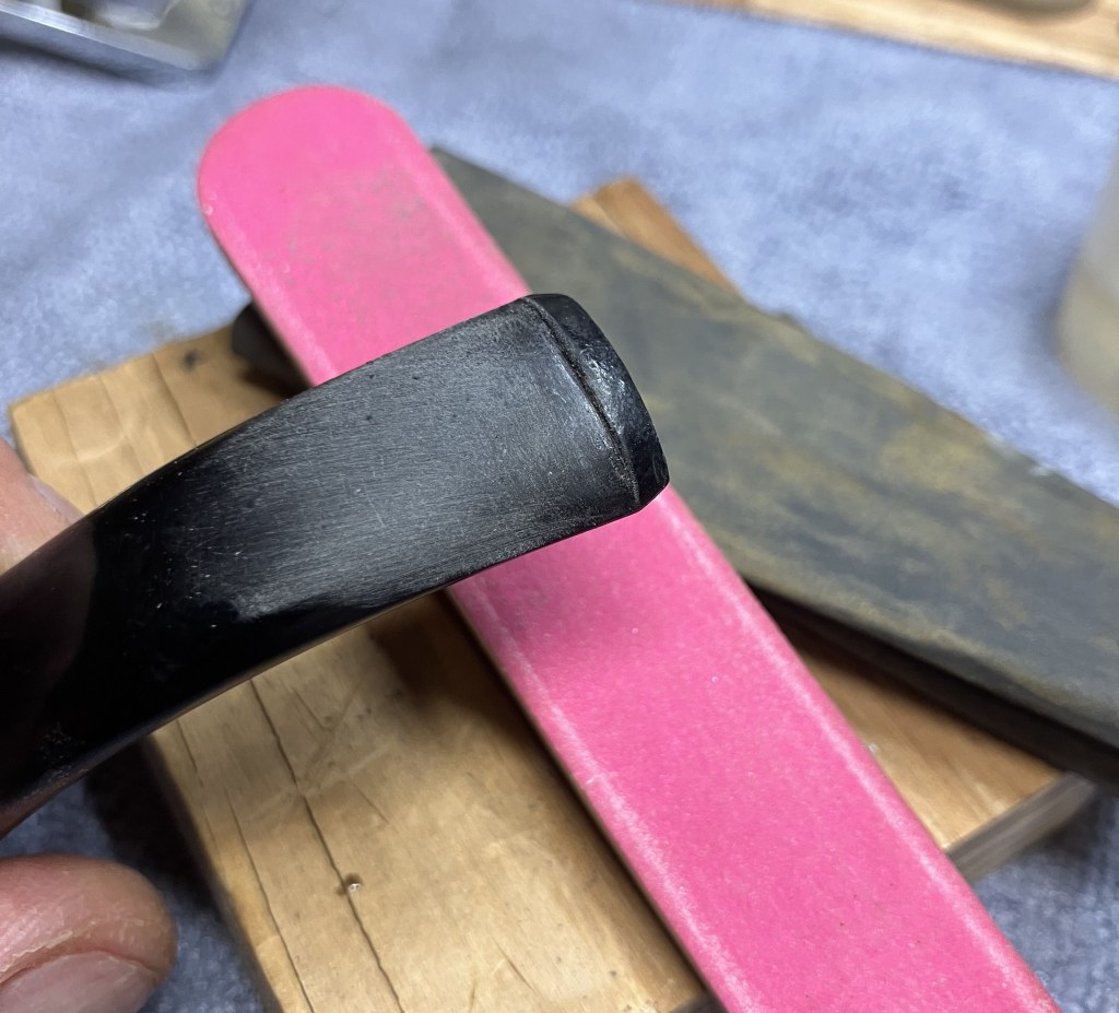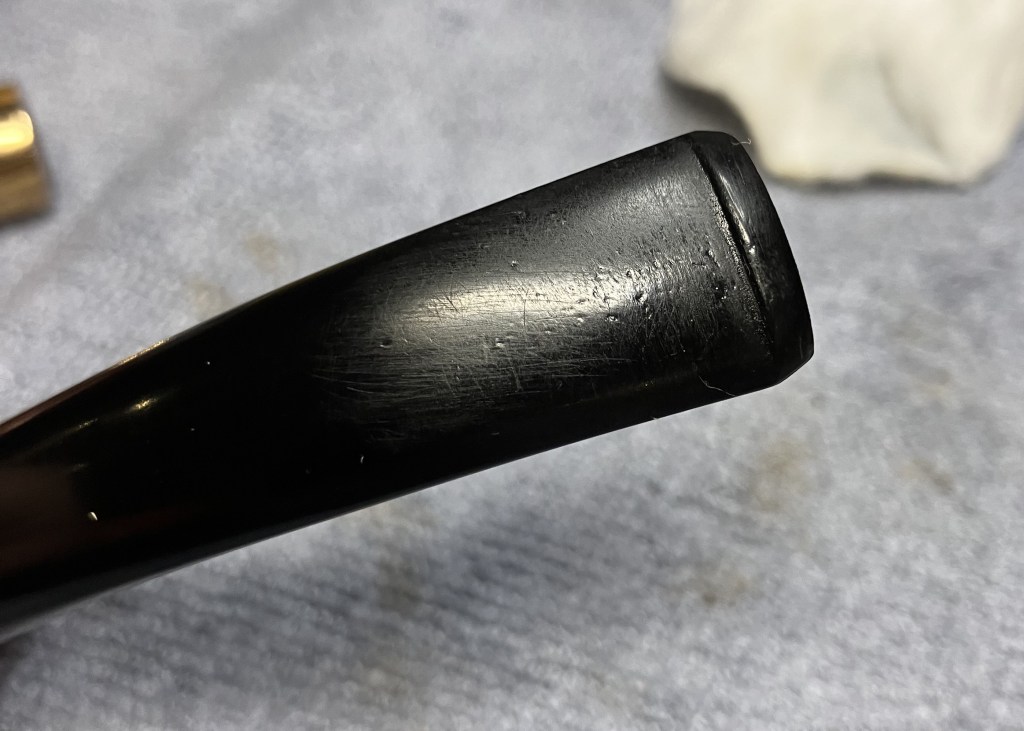 Now for the part that I dislike, restoring the nylon mouthpiece.  There was some tooth chatter on the top and bottom.