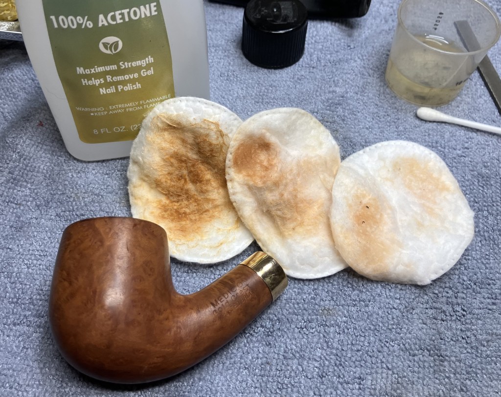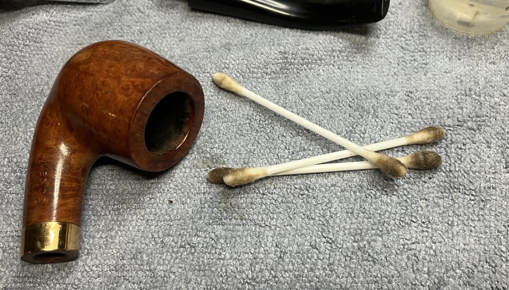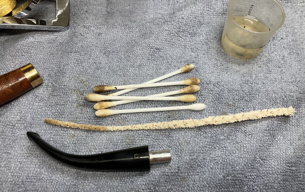 Next came the cleaning of the shank, again with alcohol, cotton swabs and bristle pipe cleaners.