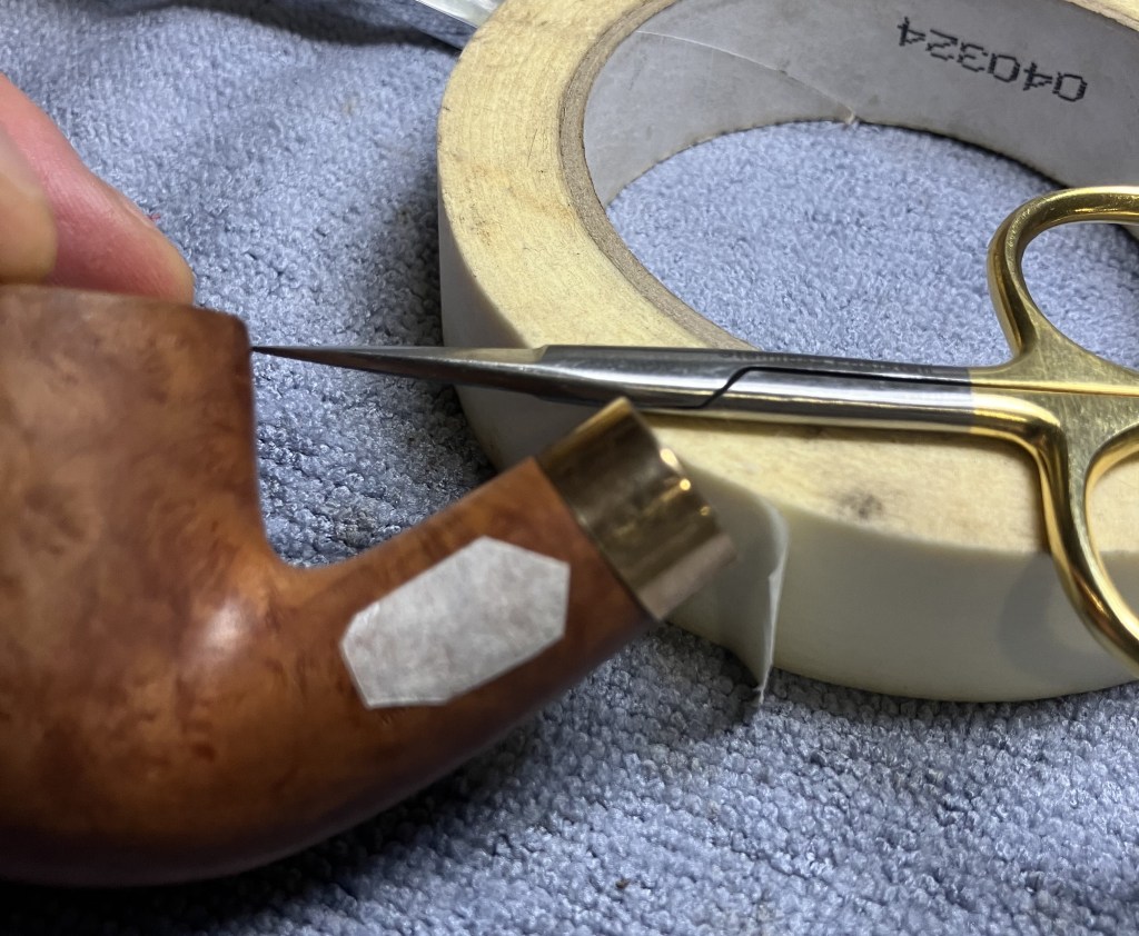 The band was also masked for its protection then the briar was sanded using a series of sanding sponges from 600-3500 grit. In between each sponge the stummel was wiped with a make-up pad wetted with alcohol.