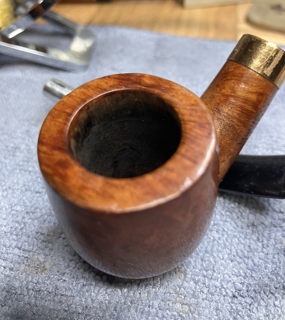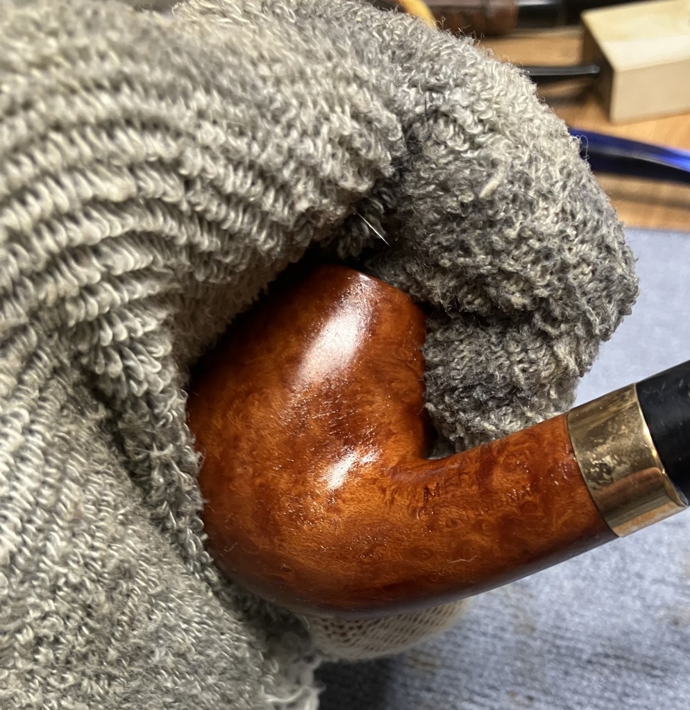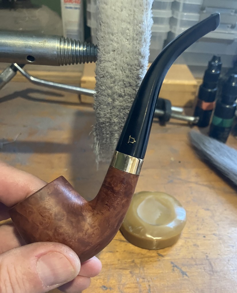 Below are some photos of the finished Medico Gold Crest 63 Bent Billiard.