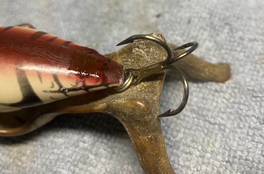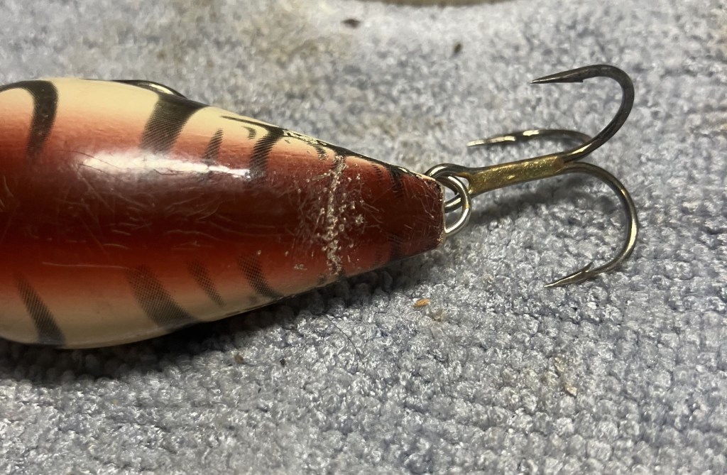 The hardware was reattached and the bait returned to Matt.  Here is the point where you ask, “Didn’t you sharpen all the hooks for him?”  Heck no, he is always catching more fish than me anyway.