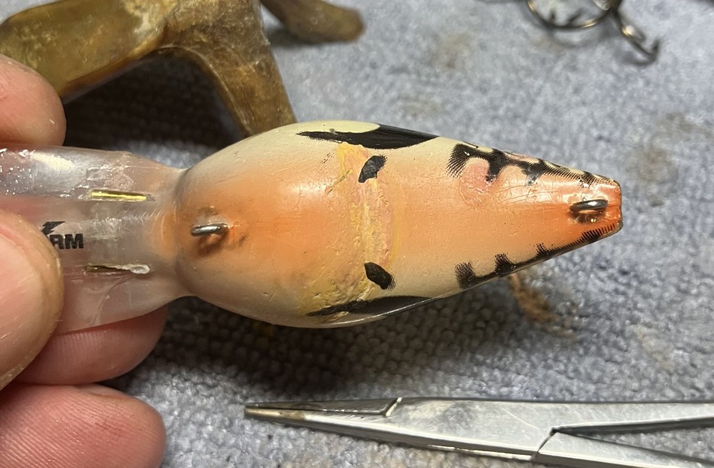 I also blended some acrylic model paint to cover the hook rash on the belly of the bait.  Had I been thinking I would have given this a light coat of thin CA to seal the paint as well.  Too bad I wasn’t thinking.