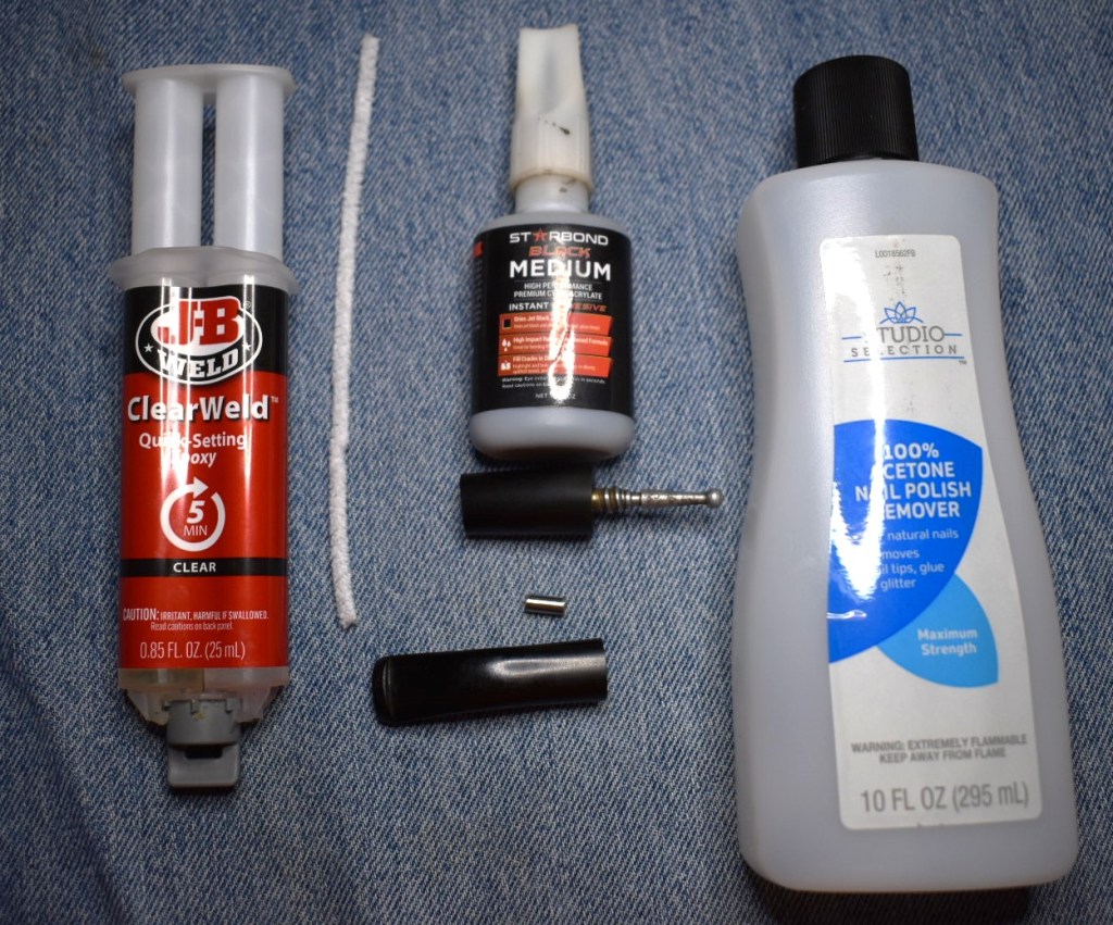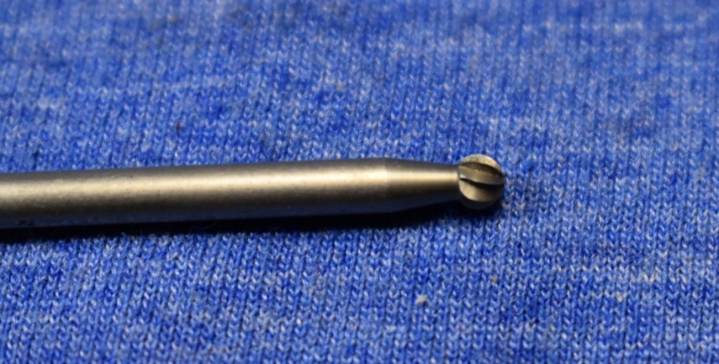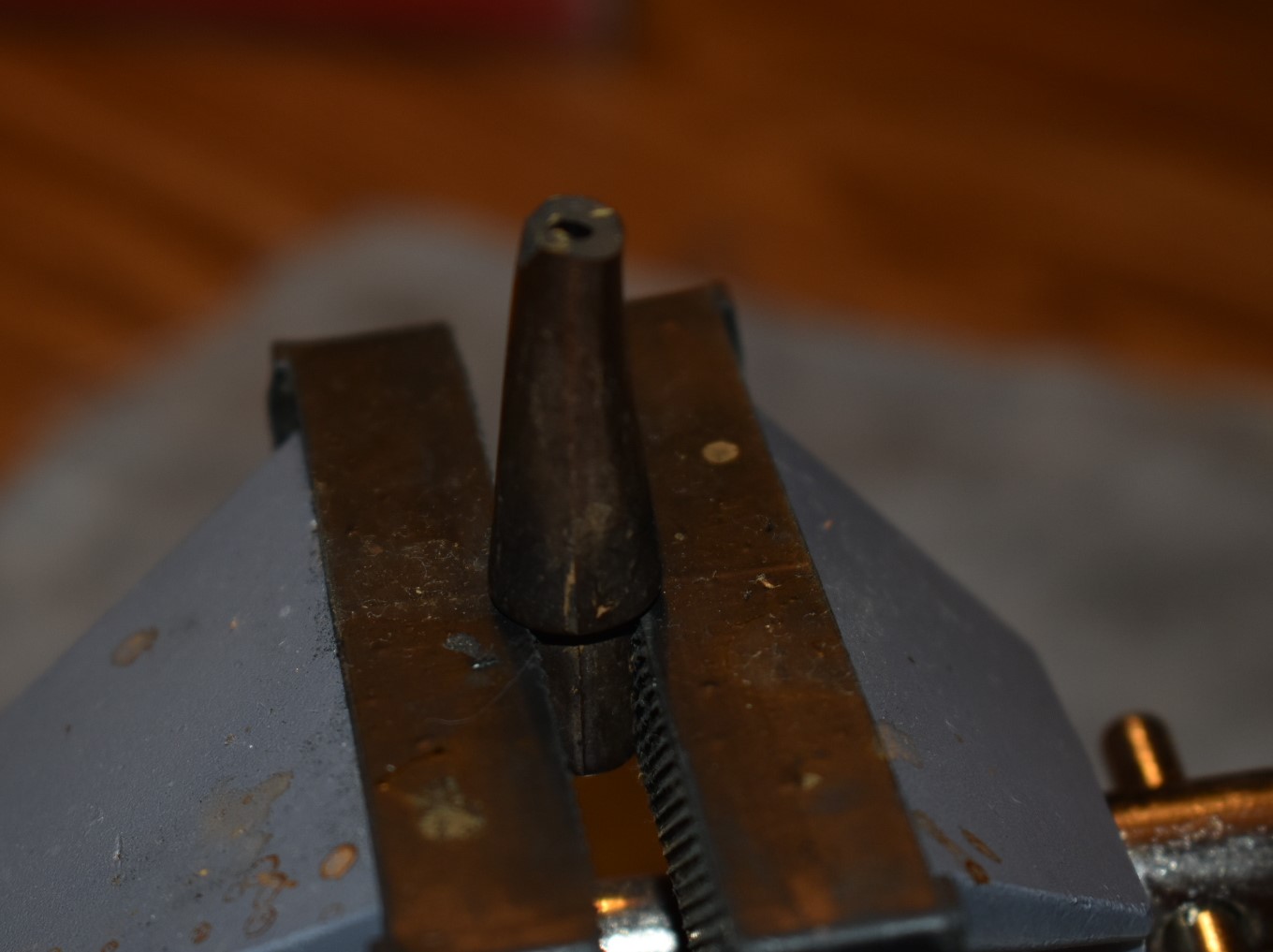 First thing I addressed was removing the old fill material. It was fairly soft and canme out with little effort. I used the dental pick and fly tying bodkin for most of the removal and scrubbed the hole with a brass wire brush.