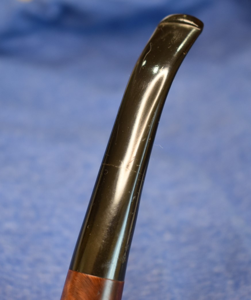 The stem was then sanded with micro-mesh pads. The 1500 and 1800 pads were used with a drop of water on them. Between each pad I would apply a drop of Obsidian Oil, rub it in with my finger and wipe away the excess with a paper towel. After the first two pads, the remaining series was used dry with the application of oil and wiping the same. The stem was taken to the buffer where I applied several coats of carnauba wax.