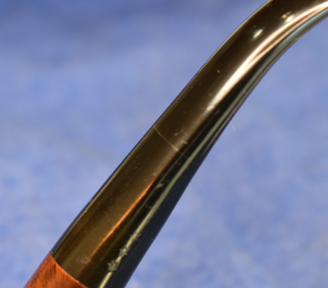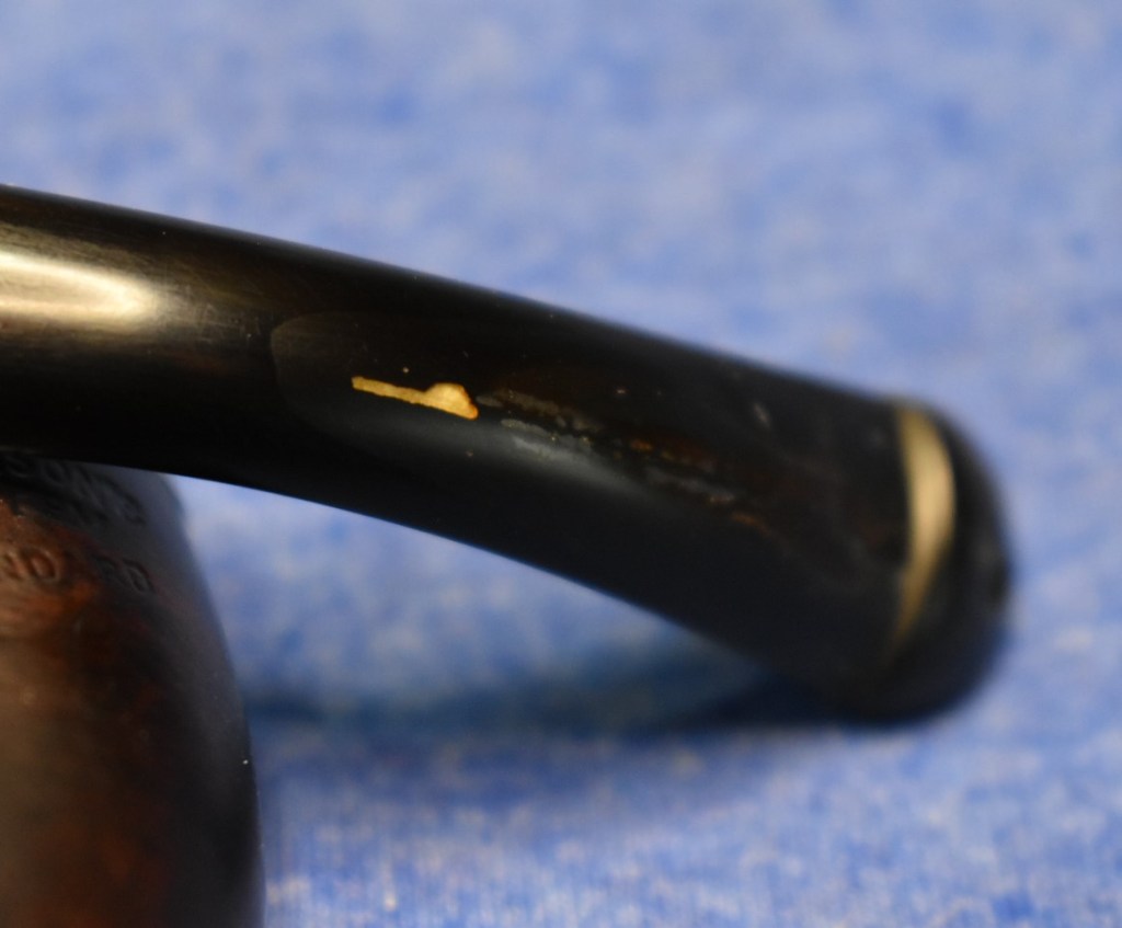I turned my attention to the stem. The stem had obviously spent a good deal of time in someone’s mouth. There was teeth chatter, calcium deposits and an oxidation pattern suggesting frequent use. There were no deep dents
