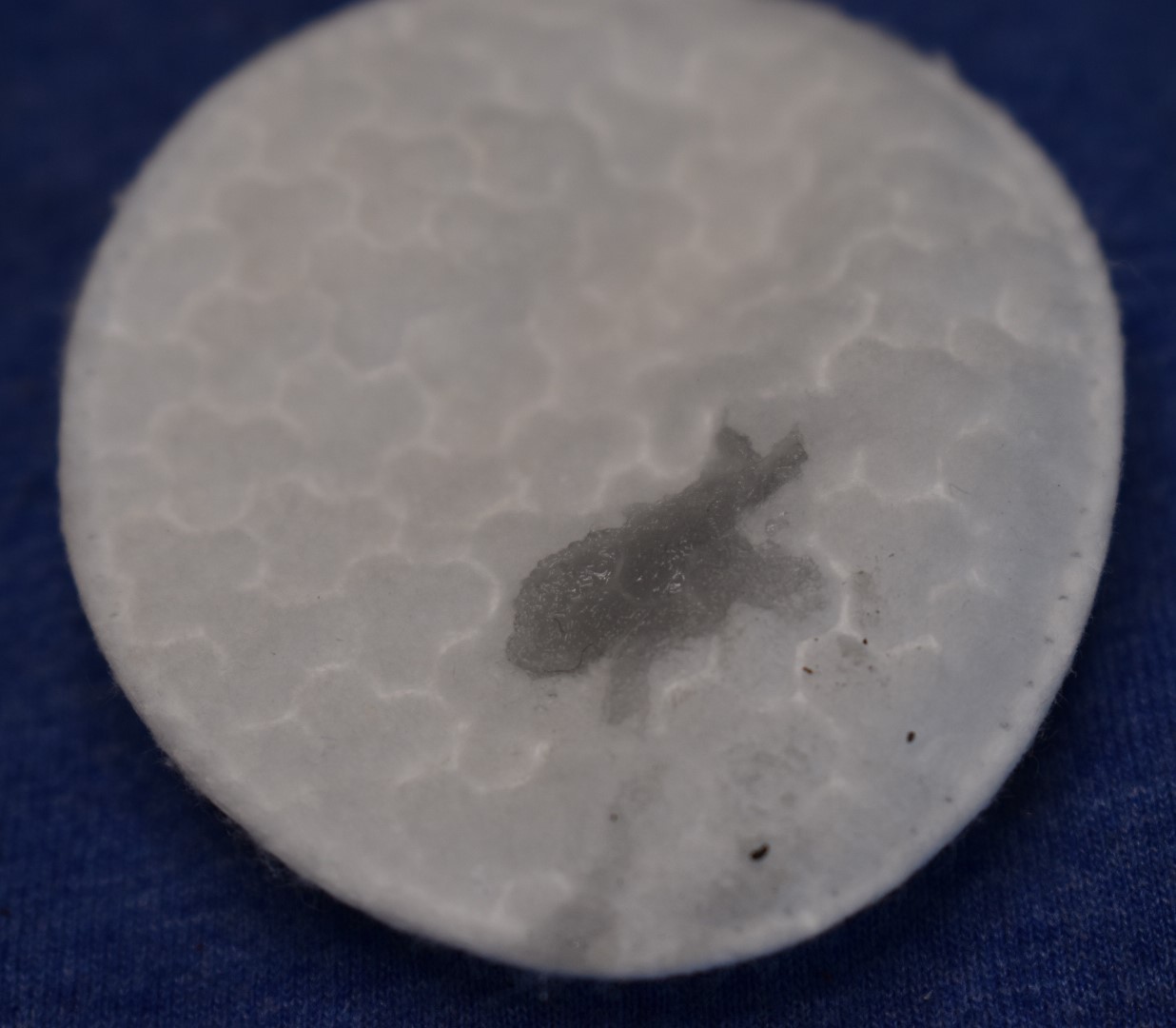 I tried the same thing with acetone on the right side. This pad came back with more material removed but there was still finish left behind.