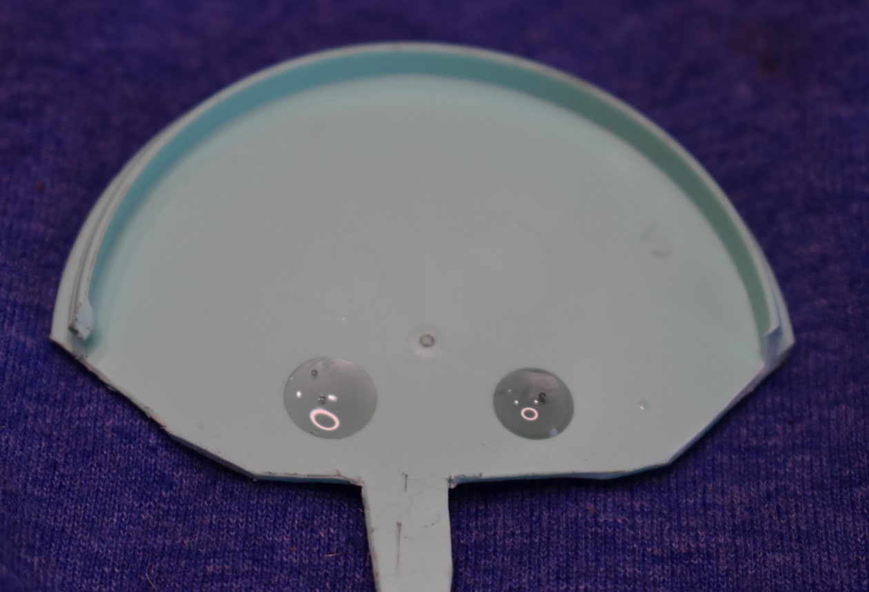 The rim was moistened with a bit of saliva and scaped with the edge of a sharp knife. The knife blade is straight, not curved, and is held perpendicular to the rim. Very little pressure is applied so you can see that only the lava is removed. The edge is wiped on a paper towel frequently to remove the lava from the surface. The below photo shows a scraped rim with only a couple of spots of lava remaining. This will be removed during the next phase of scrubbing.
