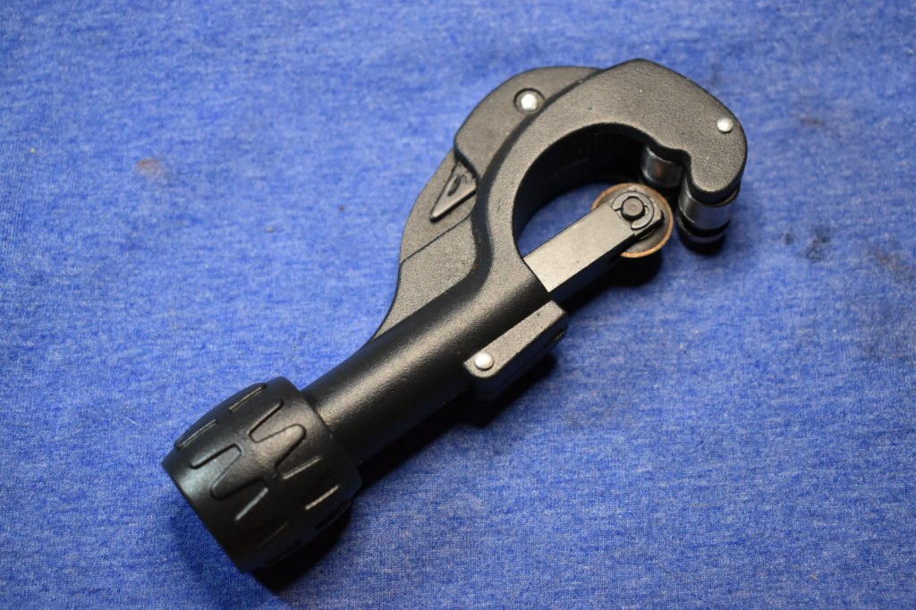 prior to me actually buying several different diameters of brass tubing. In the case of this KB&B (?) I used a 44 Remingth Magnum spent cartridge (pun intended) as the donor. A pipe cutter was used to cut a piece that would cover the crack. The cutter is nice as it gives the brass a little bend to the cut end and softens the edge.